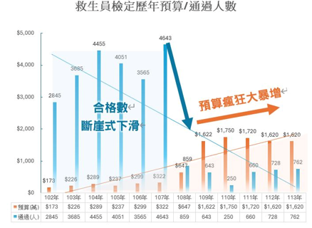 「每培養 1 名救生員的成本,從 102–107 年期的基準,大約提高超過 34 倍。」 根據媒體報導,自10… Read More »「108 年改採國家檢定後,救生員產出量與預算效率出現明顯結構性惡化。」