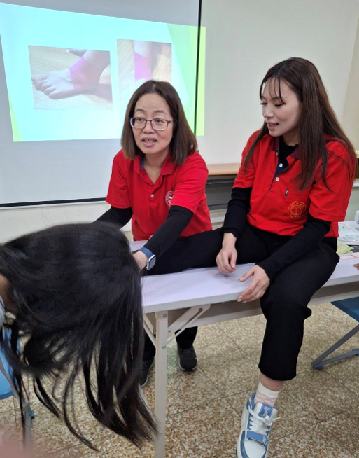 本會教練團充電課程,這次請到專業護理師教導「肌內效貼紮課程」,教授如何利用彈性貼布(肌貼)來預防、保護運動傷害並加速復原。這項技能應用在預防運動傷害、緩解日常疲勞、改善姿勢、輔助康復與提升運動表。